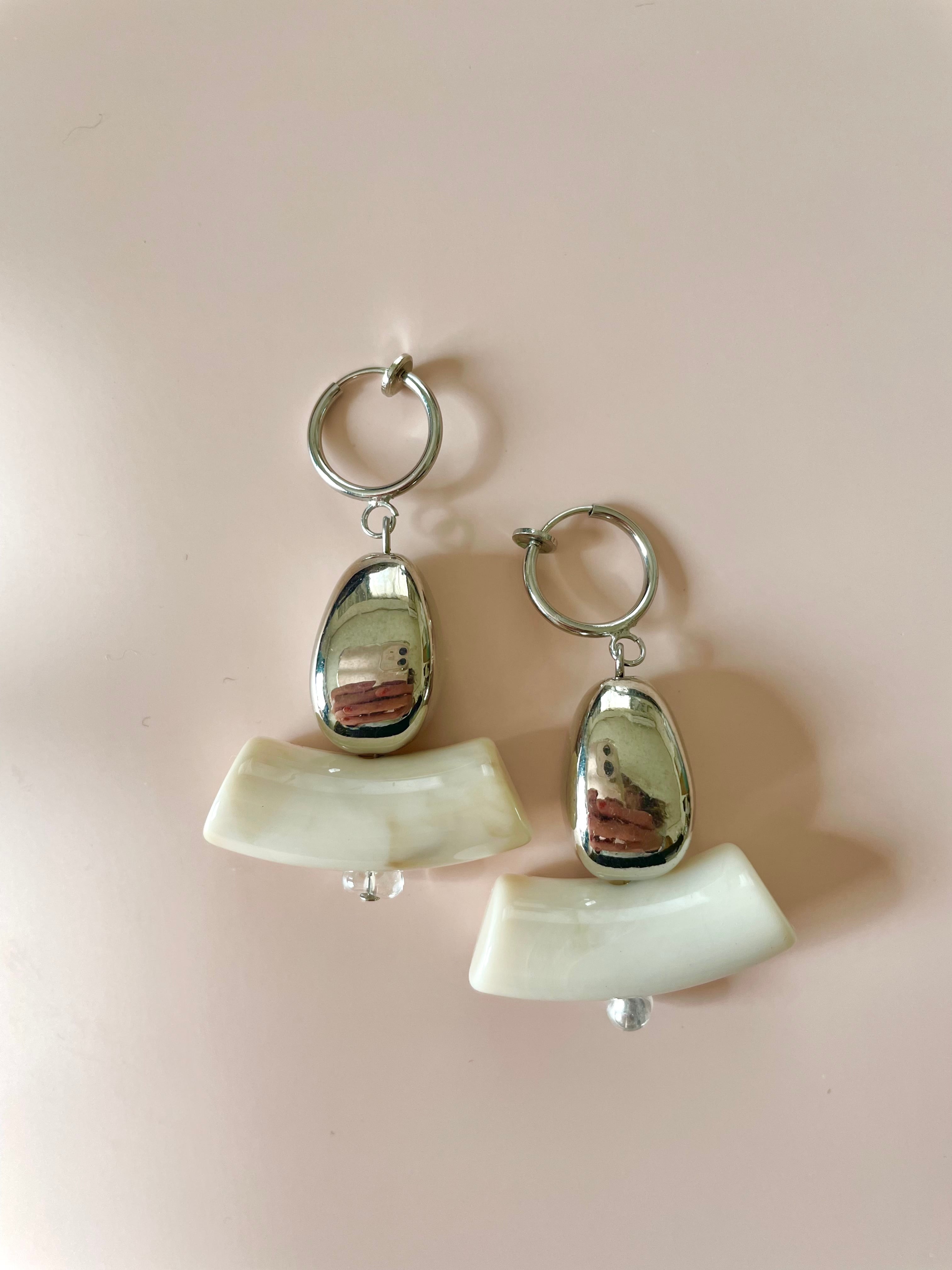 ピアス、イヤリングです。ベージュのアクリルパーツは、うっすらとブラウンのマーブル模様もあり、鹿のツノのような見え方も!